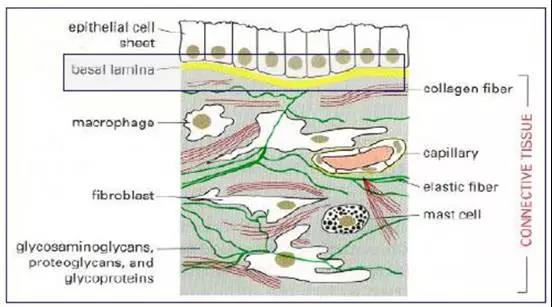 在體內(nèi),基底膜是以細(xì)胞為基礎(chǔ)的薄層細(xì)胞外基質(zhì)??祵?Matrigel matrix 是從富含胞外基質(zhì)蛋白的 EHS 小鼠腫瘤中提取的基底膜基質(zhì),其中含有約 60%層粘連蛋白、30% IV 膠原和 8%的巢蛋白??祵?Matrigel matrix 還含有基底膜聚糖、TGF-?、表皮生長(zhǎng)因子、類胰島素生長(zhǎng)因子、組織纖溶酶原及其他生長(zhǎng)因子。